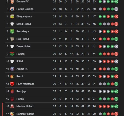 Klasemen BRI Super League 2025/2026 Terbaru: Persib di Puncak, Borneo FC Mengintai Ketat